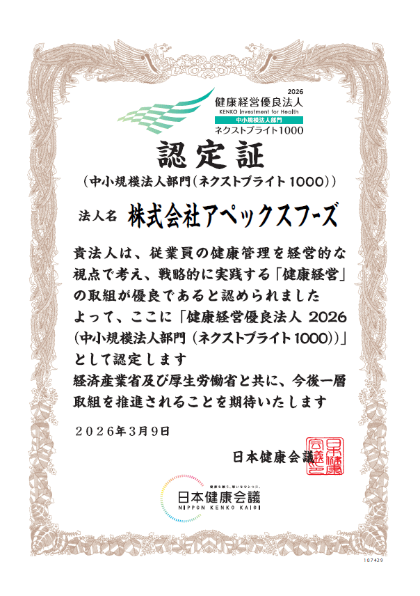 経済産業省と日本健康会議が進める健康経営優良法人認定制度において、2020年に認定されて以来7年連続となります「健康経営優良法人2026(中小規模法人部門)」に認定されました。